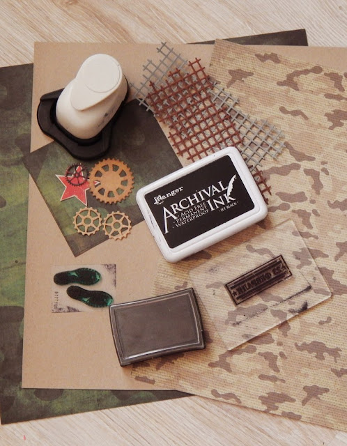 Делаем хаотичные отпечатки штампов. У меня - следы ботинок 1,3 см х 3,8 см .